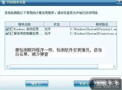、瑞星要扫描并添加 所有运行的程序 ,并将检测到的程序添加到程序控制中去!!!最好就是 像瑞星防火墙一样 ,初次安装并扫描 系统中有哪些常用程序,并添加到程序控制中