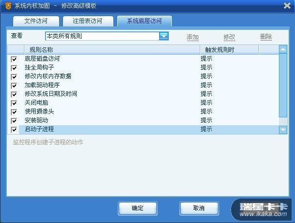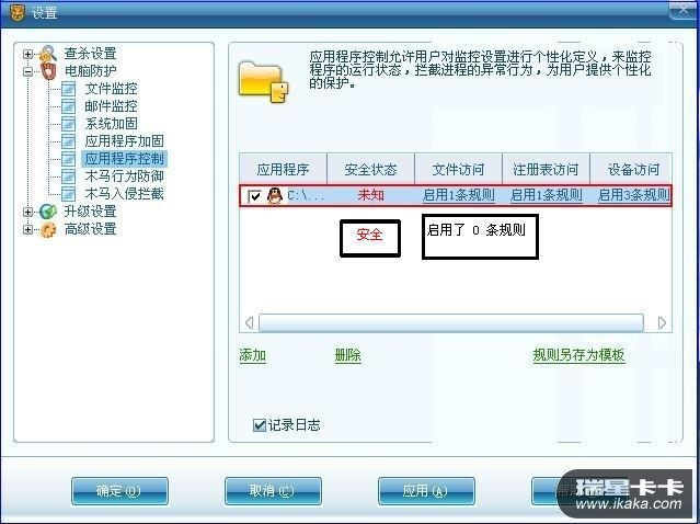 a、信任模板 :瑞星的信任模板就是 将上图中的 9个 规则 都添加到程序 控制中!!!