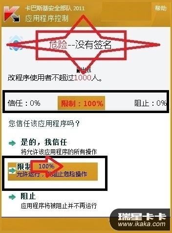 bc这两种情况,卡巴有个特点就是 程序启动控制如下图::::::::::::::::::::::::::::