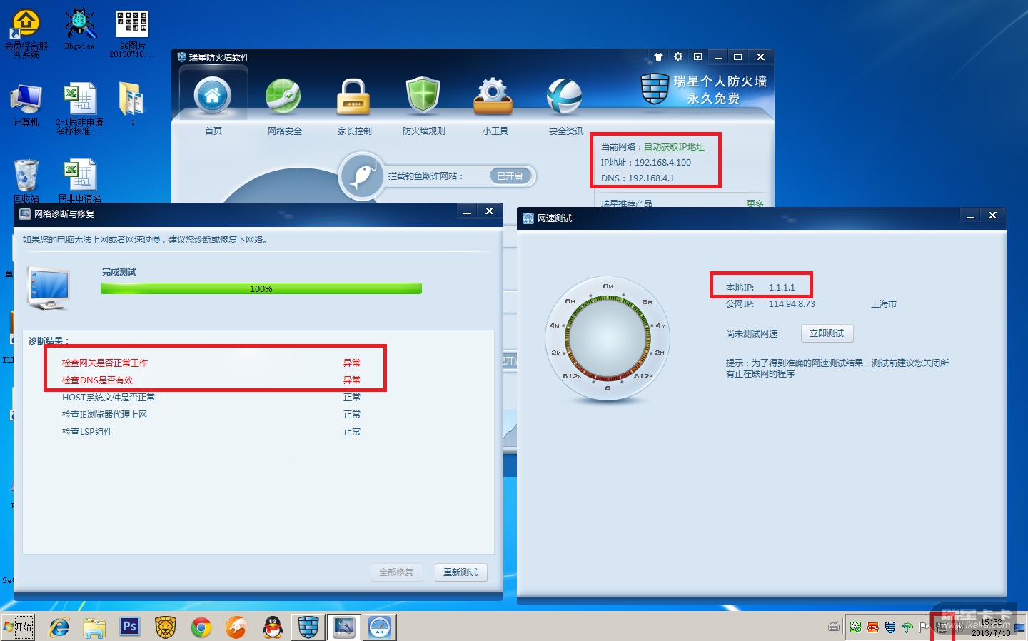 请楼主详细描述一下,192.168.4.100以及1.1.1.1这两个网卡分别是干什么用的?