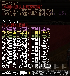 在国家界面→征伐天下→护国神兽界面中,看到护国神兽活动相关规则介绍和奖励。