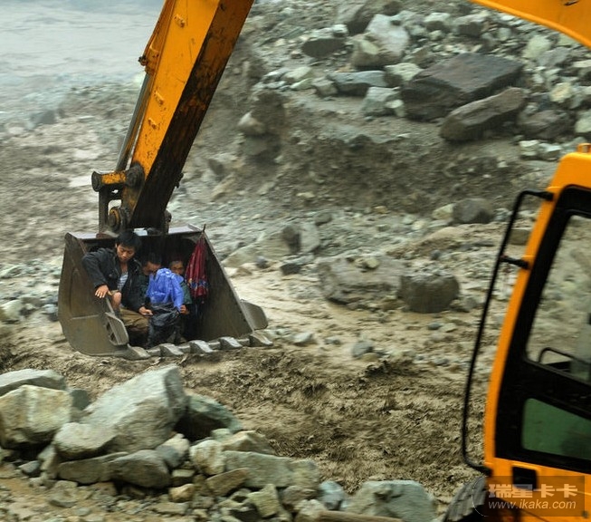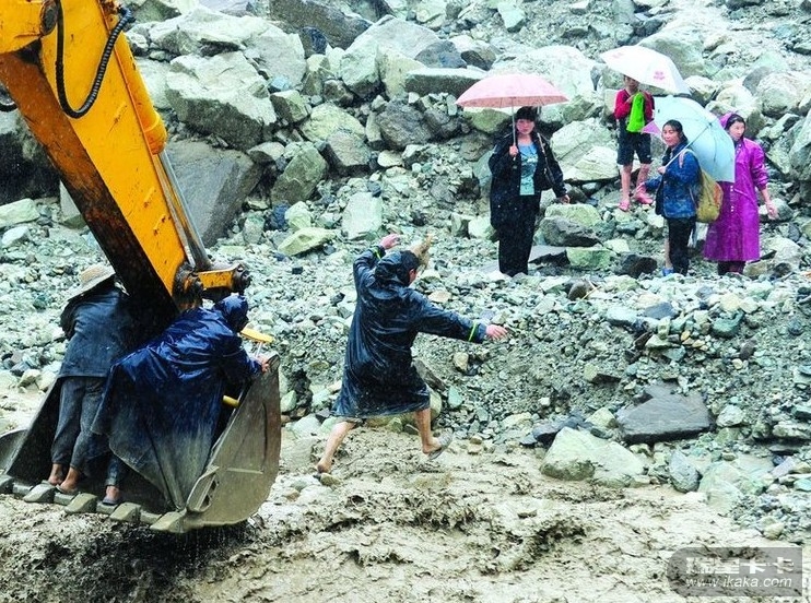 四川映秀突发泥石流 挖掘机转移受困者