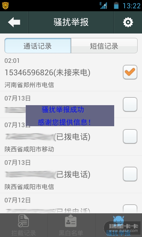 不知道是软件设置如此还是存在问题,骚扰举报设置完成,点击骚扰举报按钮也不提示是否成功提交,因为再次打开骚扰举报,里面也没有保存以前举报过的内容,让人有种举报无门的感觉,也不知道瑞星是否接收到我举报的内容,所以建议如图1、2,选择要举报的内容,点击骚扰举报按钮后,如果提交成功应该有提示更人性化!也更快能丰富瑞星的骚扰拦截库!