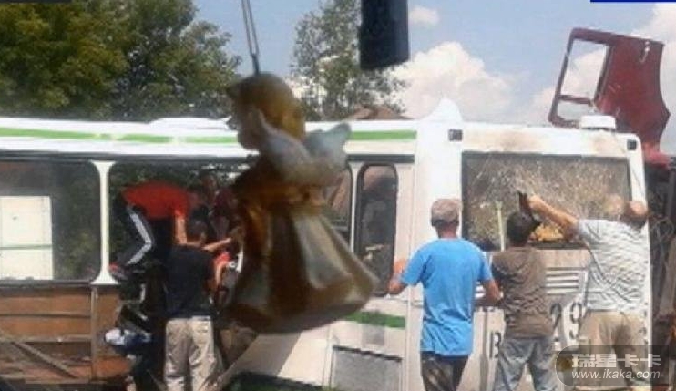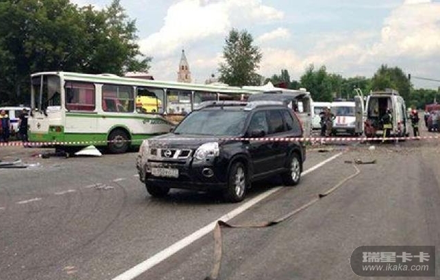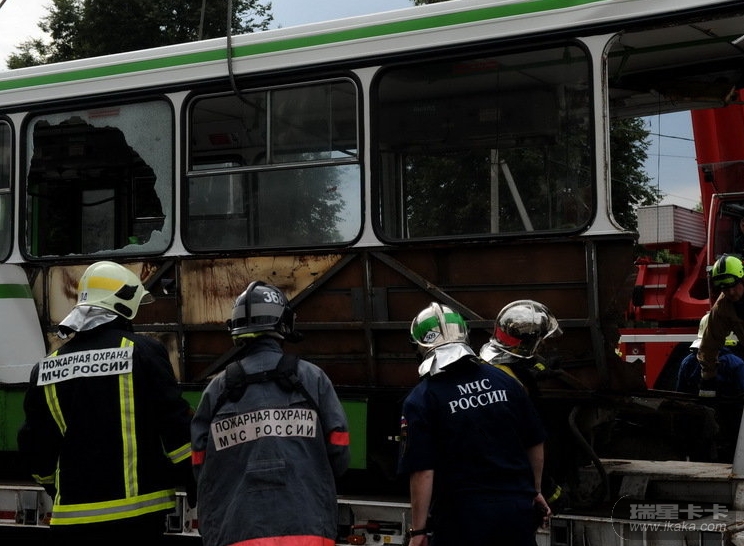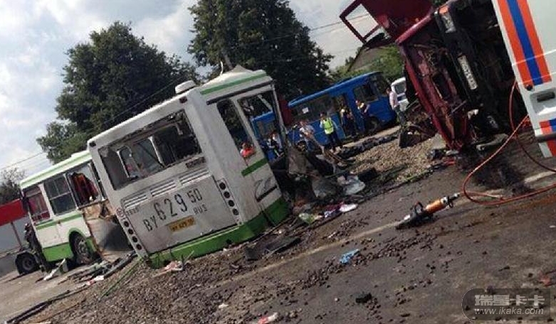 这是7月13日俄罗斯国家电视24台播放的事故现场截图。俄罗斯卫生部新闻处13日晚间说,俄首都莫斯科当天发生一起公共汽车与货车相撞事故,目前已造成包括1名婴儿在内的18人死亡,另有61人受伤。