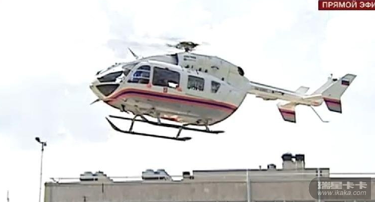 7月13日俄罗斯国家电视24台视频截图显示,一架俄罗斯紧急情况部救援直升机正赶往事故现场。