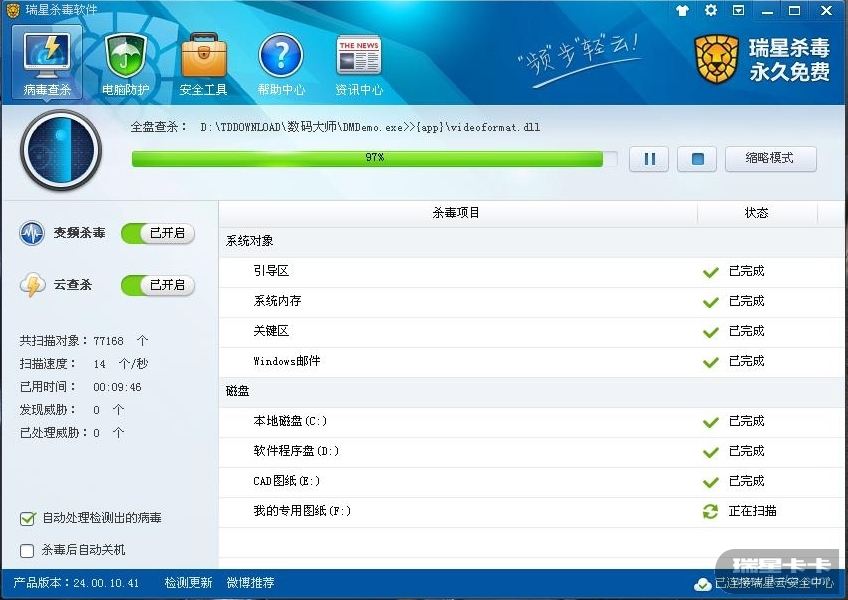 明明已经杀到F盘了,而且进度已经到95%,怎么会突然又跳到D盘去扫描个别文件夹呢?