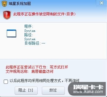 结果::瑞星提示system 试图 以写方式打开底层磁盘