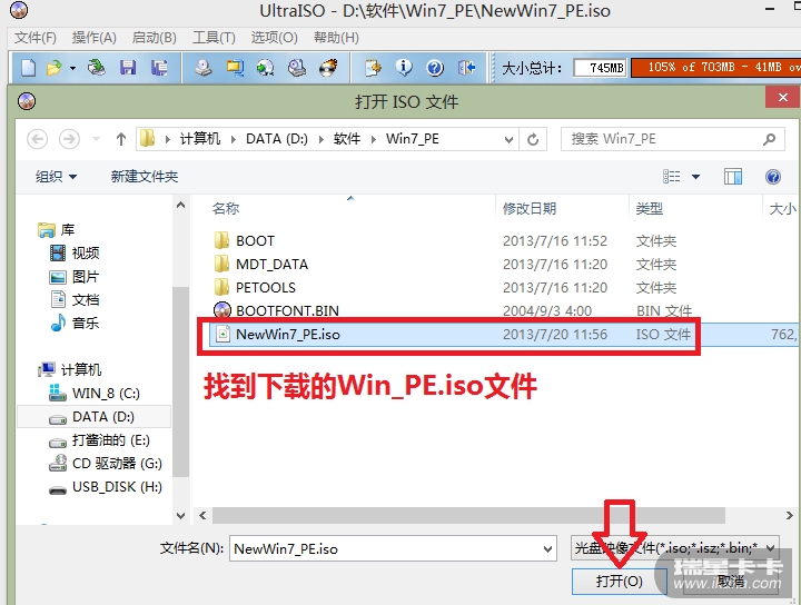 2、找到、打开已经下载到硬盘中的的Win_PE.ISO文件。