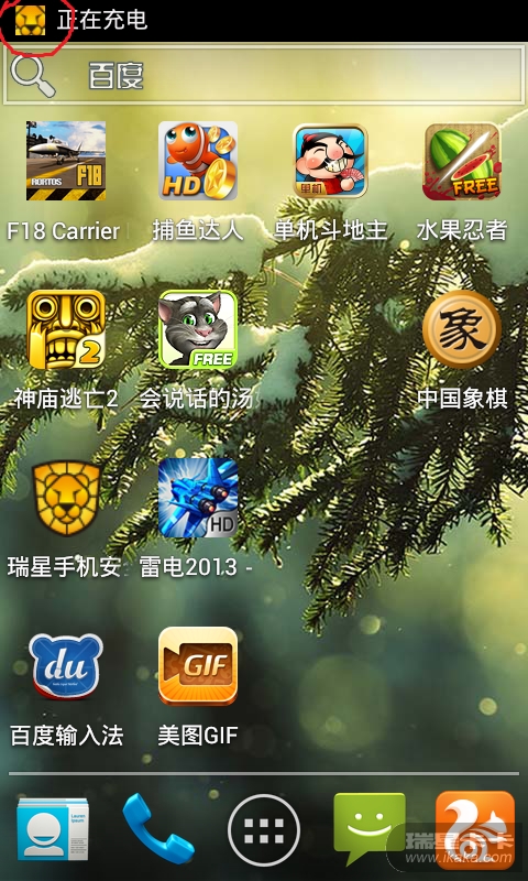 建议:瑞星手机安全软件的提示栏图标,不是一个完整的狮子头,其中包括:充电提醒、开机时间提示等,如图显示,希望改进!
