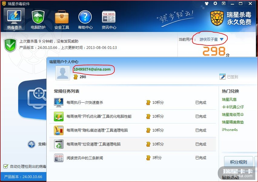 大版主啊,我的也是这么显示的 (杀软主界面和个人中心显示的用户名不一致)