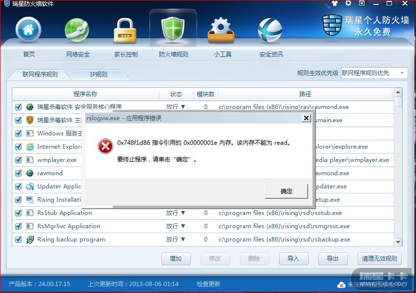 如果有,请压缩跟帖上传(防火墙默认安装路径:C:\program files\Rising\Rfw)