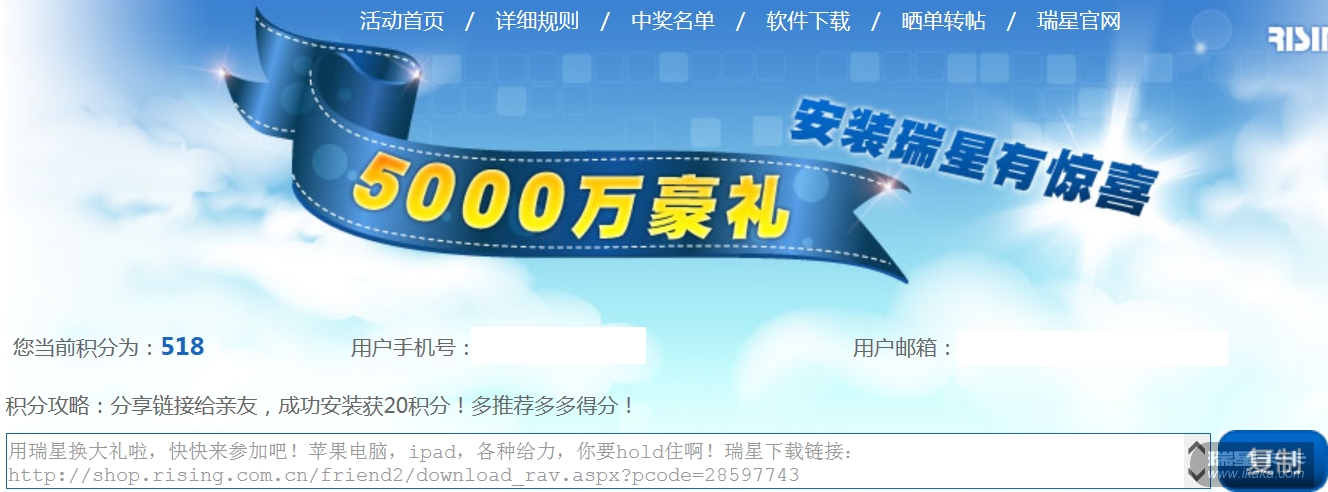 【瑞星5000万豪礼】积分新规则和升级步骤可参考: