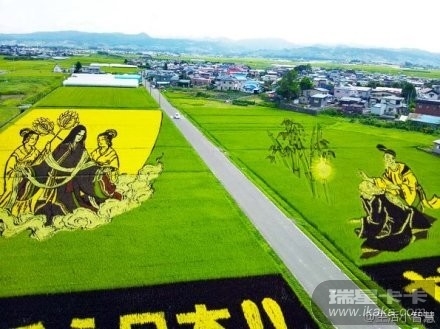 每年4月日本当地村民都会商讨当年的画作主题,然后将“起草”的任务交给村干部———他们为此夜以继日地工作十多天,精确地计算如何在一大片稻田里种植不同种类的水稻,并组织人员在田地里用芦苇秆做出上千个标记点。这里的稻田画主要采用黑稻米和紫稻米等水稻品种。