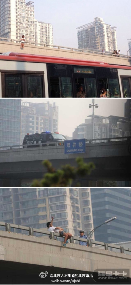 北京东三环双井桥堵车原因:一女子欲跳桥