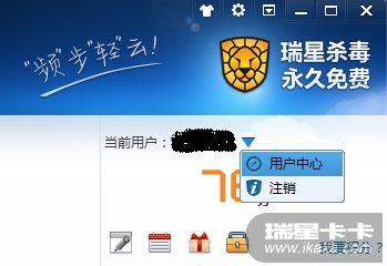 1,登录杀毒软件客户端,从杀软界面进入用户中心: