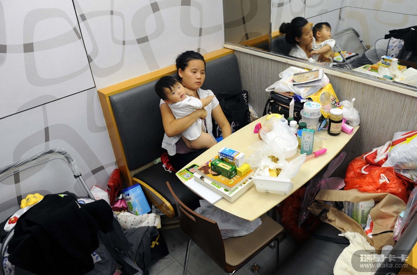 姜女士面色憔悴。来到北京后,姜女士先是住进救助站,但在一天后便离开,住进了肯德基。到现在,肯德基工作人员并没有驱赶她们母女。
