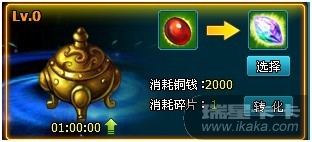 1. 转化需要消耗一定的铜钱、宝石碎片(由商场和活动获得)和时间