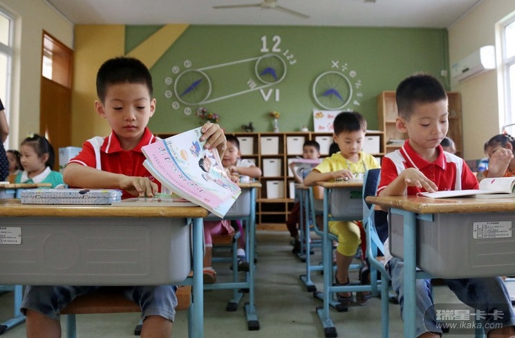 9月1日,南京中央路小学一年级的双胞胎兄弟王宁璐、王宁坤在教室翻看新书。
