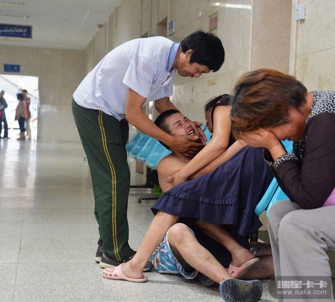 在医院大厅里,一名年轻男子哭倒在走道的长椅上,坐在他身旁的几人也都红肿着眼睛。男子情绪几乎失控,试图冲进抢救室,被旁人拦住。男子就是女婴的爸爸杨先生,陪在他身边的是女婴的爷爷奶奶。