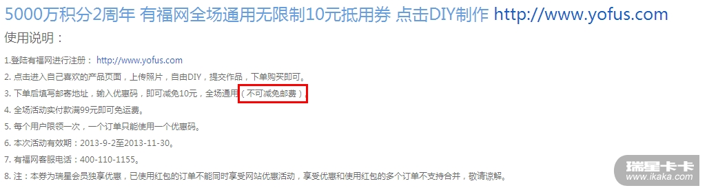 另外在奖品使用界面中,是有说明的哦,说明第三条标明了,奖券是不可减免邮费的。。