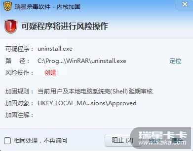 winrar的 安装文件 存在签名,为何瑞星还要弹窗拦截呢???