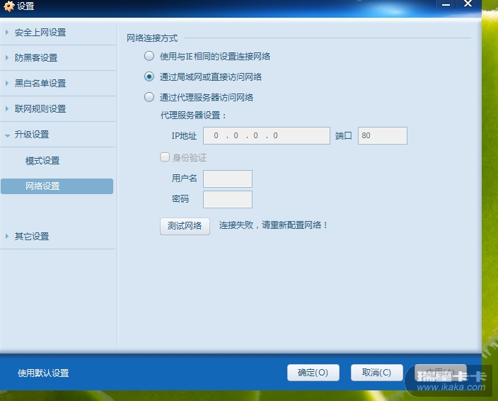 如果可以打开,请在防火墙升级设置中,选择第一项使用与IE相同的设置链接网络即可。