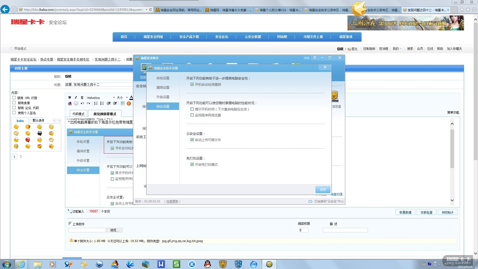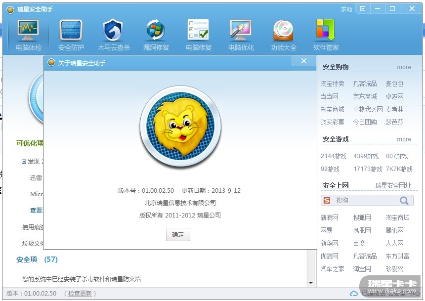 重启电脑后,出现电脑屏幕的右下角显示红色带有瑞星安全助手头像的漏洞提示框,据我的推算时间不是很长,大约在5-10秒这个时间段,用一闪而过成语形容它的速度快。