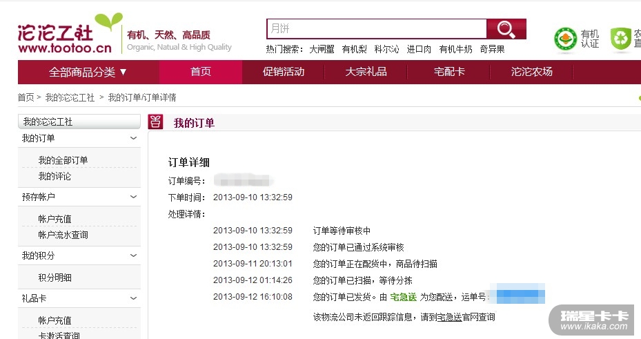 月饼也发货了,宅急送呢还是,瑞星真给力,可惜寄到家了,拍不了照片,没法晒单了.