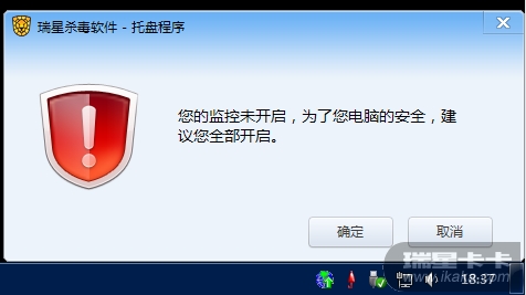 如果关闭了所有监控,再重启电脑,重启后就会有这个提示,重启电脑后瑞星自己打开所有监控就行了,还搞个提示干嘛,烦!建议修改