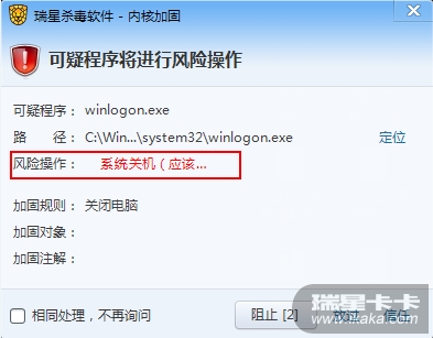 2.看到上面可以可以拦截关机想到前几天有个关机样本,于是拿来双击了一下,弹窗又有新问题:kaka7:
