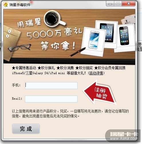 楼主填写手机邮箱就可以参与到瑞星5000万有奖活动中。