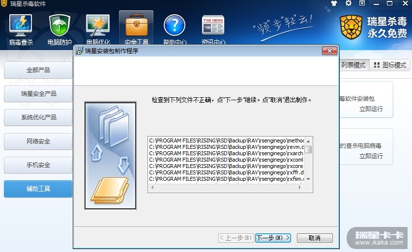 先尝试修复一下v16,点击开始——程序——瑞星杀毒软件——修复瑞星杀毒软件,修复完成后在制作安装包试试。