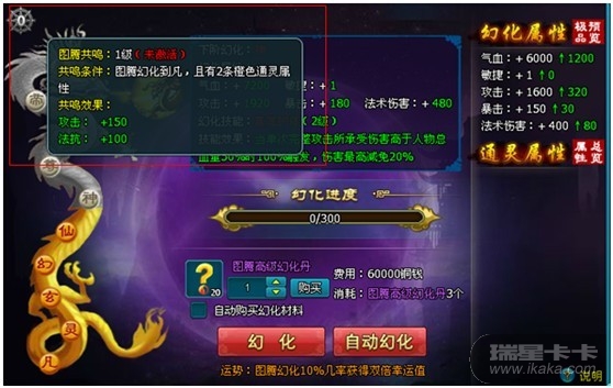 图腾增加共鸣功能哦,幻化到一定阶段,且通灵属性达到一定要求,就有丰厚属性加成哦!