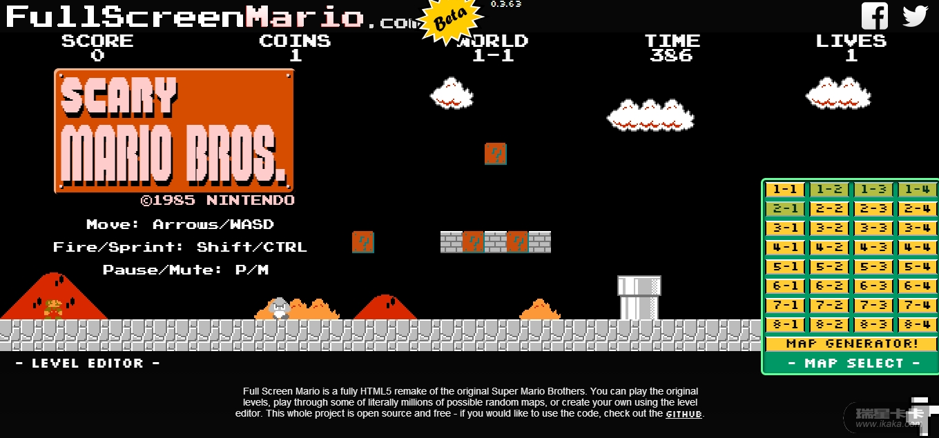 注:只支持 Chrome内核的浏览器哦!链接:http://www.fullscreenmario.com/