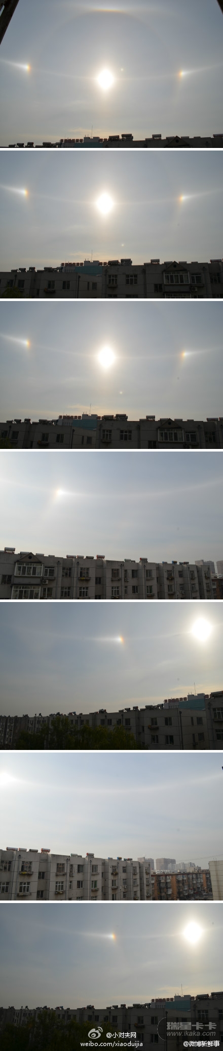 11月1日上午,赤峰地区出现太阳晕天气现象。记者连线国家天文台,据工作人员介绍,这种天气现象属于太阳晕现象,主要是由于带有冰晶的云层过境折射太阳光形成的,除太阳之外的“太阳”被称之为幻日,大大的圆弧称之为晕,此天象好看不多见。