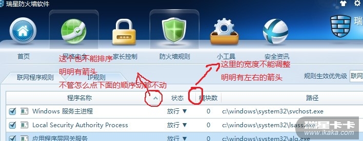 http://bbs.ikaka.com/showtopic-8616820.aspx箭头图标已经取消了。界面宽度已经可以调整了,请把瑞星个人防火墙升级至最新版试试。