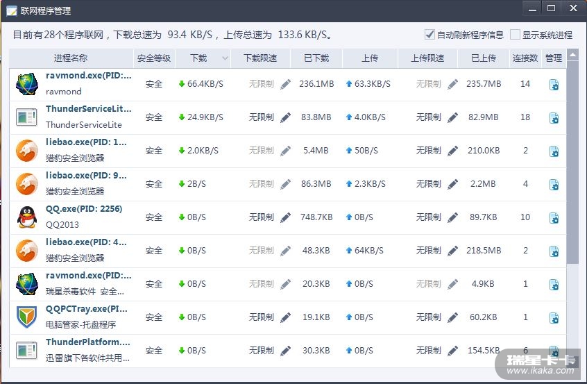 结果:瑞星ravmond进程 一直在后台 下载上传 ,占用网速,而这时 我没有进行防火墙操作