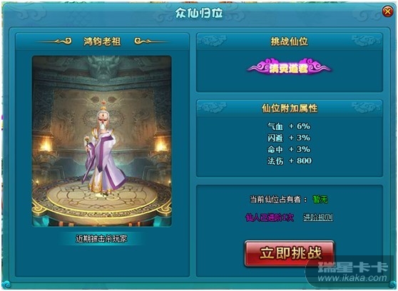 无仙位的玩家可挑战任意的仙位,已获得仙位的玩家仅能挑战更高级别的仙位。