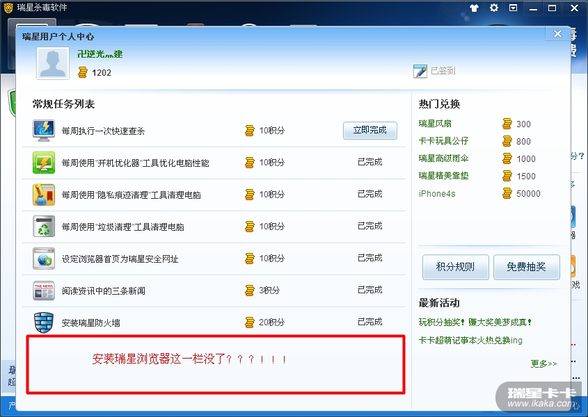 似乎。。已经安装了,但积分没加上。要是安装了的话,这一栏也不应该消失吧(瑞星防火墙怎么就没消失)?