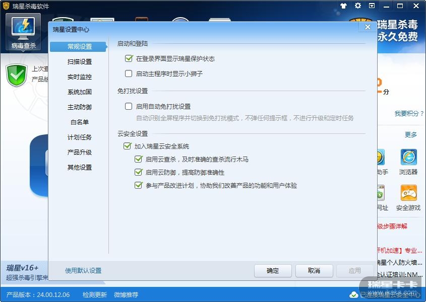 启用云查杀,及时准确的查杀流行木马,这一项也勾选上试试。