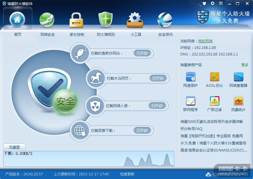 瑞星杀软已经卸载过了,目前只保留了瑞星防火墙