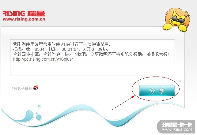 瑞星快速查杀后,跳转新浪博分享时出现错误,无法分享