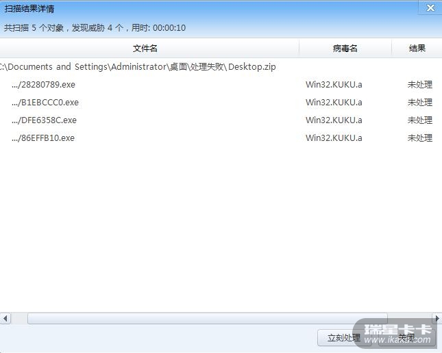另外发现BUG:直接扫描压缩包不报毒,解压以后扫描报毒