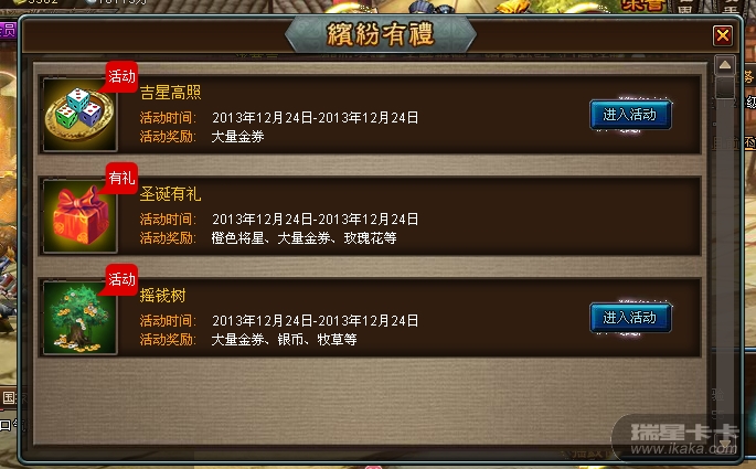 我圣诞有礼后面没有进入活动这按钮,进入游戏画面也找不到圣诞有礼这图标,还有是不是还有个国庆有礼活动,那个我也找不到,请给解决下。