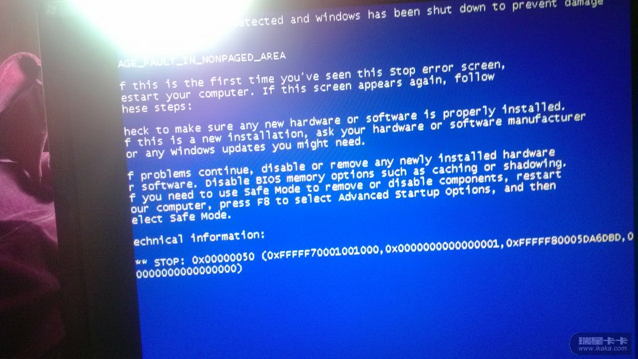 应该瑞星不兼容的bug,和系统核心文件ntoskrnl.exe冲突。
