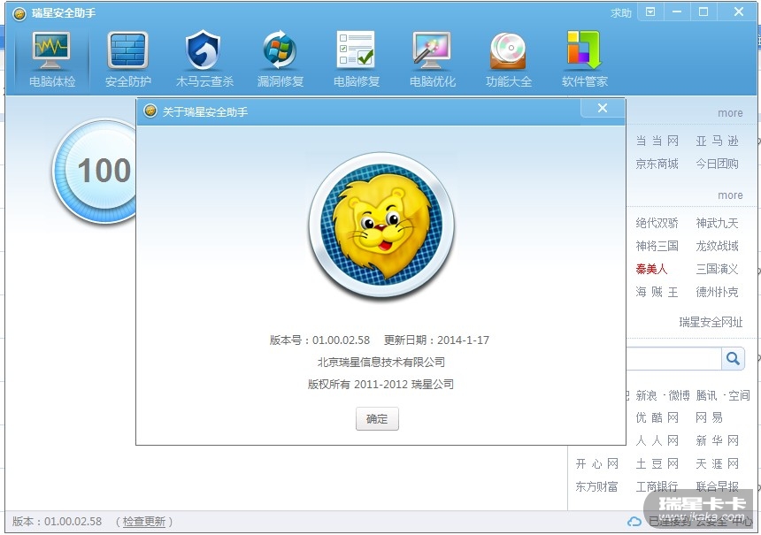 建议把它统一修改为,【北京瑞星信息技术有限公司1991—2014版权所有】这样才符合瑞星发展的历史