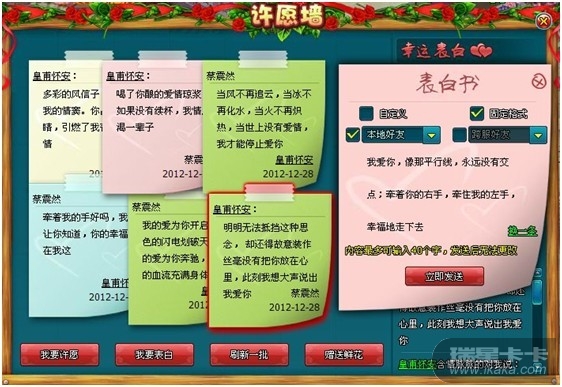 ,玩家可在【许愿墙】填写愿望和表白,字数不超过40