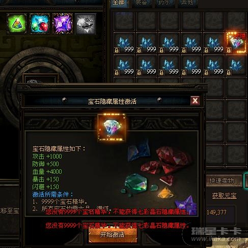 我所以低级 高级宝石全6品 宝石精华都有10000了 为什么激活不了宝石隐藏属性七彩晶石 点激活就提示没有9999宝石精华