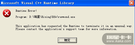 电脑最近不断地弹出一个错误窗口,关了马上都弹出来,根本关不掉。错误提示中的目录是瑞星防火墙。