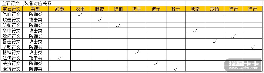 不同属性的宝石符文刻印在不同的装备上
